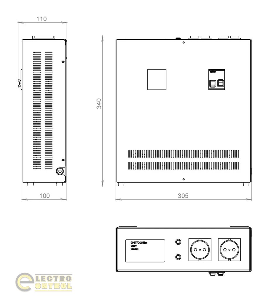 Стабилизаторы Volter СНПТО-2 slim настенно-напольного исполнения, подключаются при помощи сетевого шнура. Имеют две выходные розетки и информативное светодиодное табло. С помощью кнопок управления можно изменять среднее выходное напряжение.