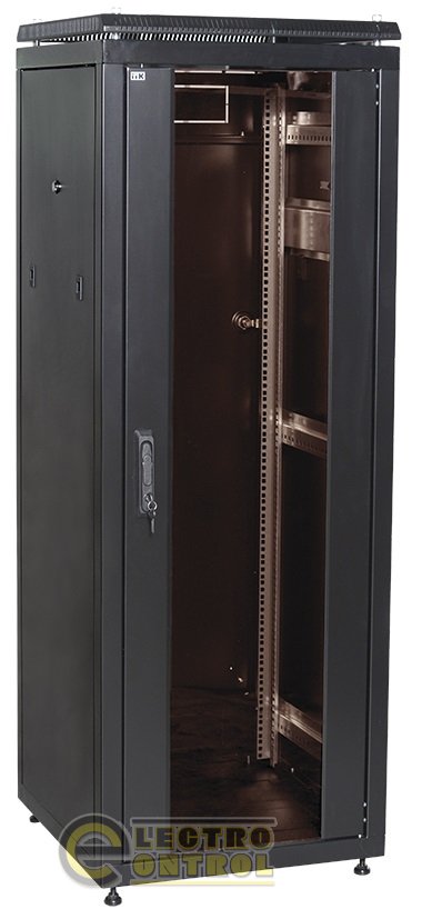 Шкаф сетевой 19" LINEA N, 24U, 600х800 мм, стеклянная передняя дверь, черный