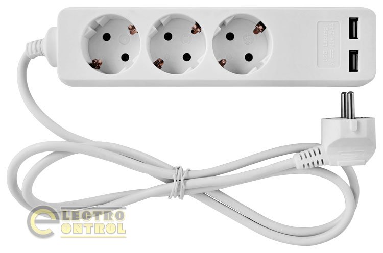 Удлинитель e.es.3.1.5.z.b.2.usb 3 гнезда, 1.5м, с USB-зарядкой, baby protect