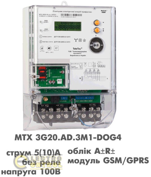 Счетчик 3-ф многотарифный трансформаторного включения TeleTec MTX 3G20.AD.3М1-DOG4