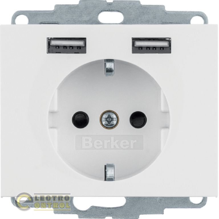 Розетка с з/к 16А/250В + 2хUSB/2.4A, пол.белизна K.1