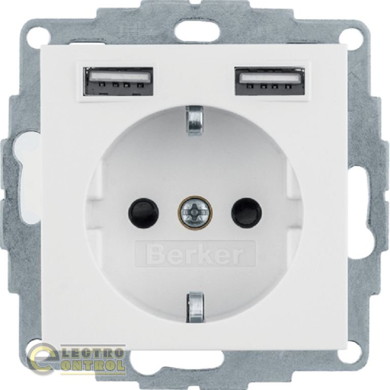 Розетка с з/к 16А/250В + 2хUSB/2.4A, пол.белизна S.1
