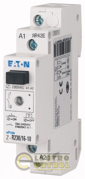 Установочные реле Eaton Z-R 16 A предназначены для контроля и управления однофазной нагрузкой до 16 Ампер. Особенностью реле Z-R является применение в своей конструкции печатных реле, что в свою очередь поспособствовало к более компактному дизайну и низкому уровню шума. Благодаря большому количеству комбинаций переключающих контактов, реле Z-R может применяться в различных задачах. Крепятся Реле Z-R на DIN-рейке и имеют удобную конструкцию для подключения кабелей к клеммам устройства.