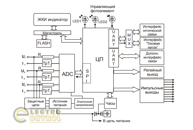 Структурная схема электросчетчика EPQS 122.23.17 LL