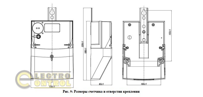 Габаритные размеры электросчетчика GAMA 100 G1M.153.220.F3.P2.C300.V1