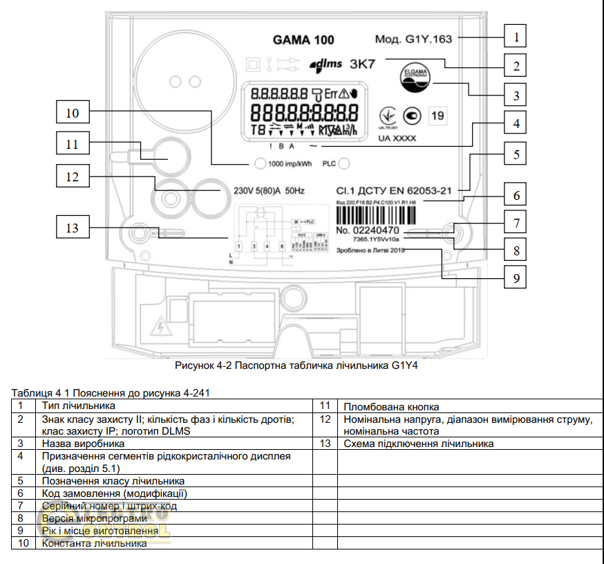 Описание электросчетчика GAMA 100 G1Y.163.220.F18.B2.P4.C100.V1.R1.H6