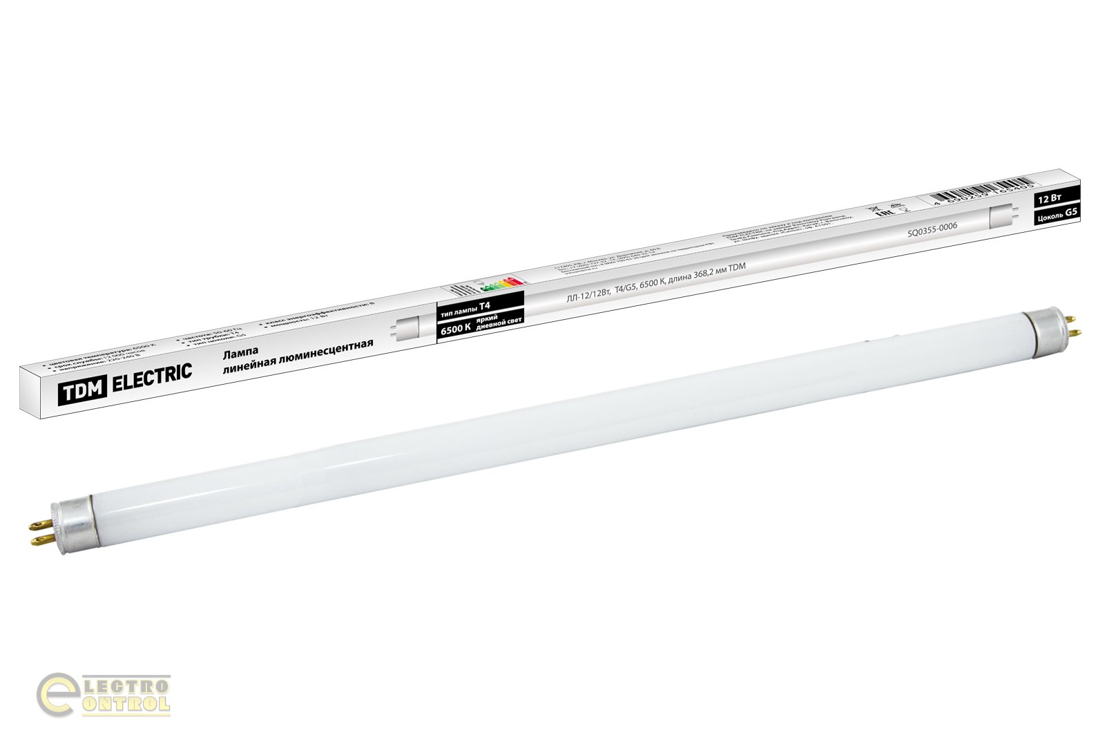 Лампа люминесцентная линейная двухцокольная ЛЛ-12/12Вт, T4/G5, 6500 К, длина 368,2мм TDM