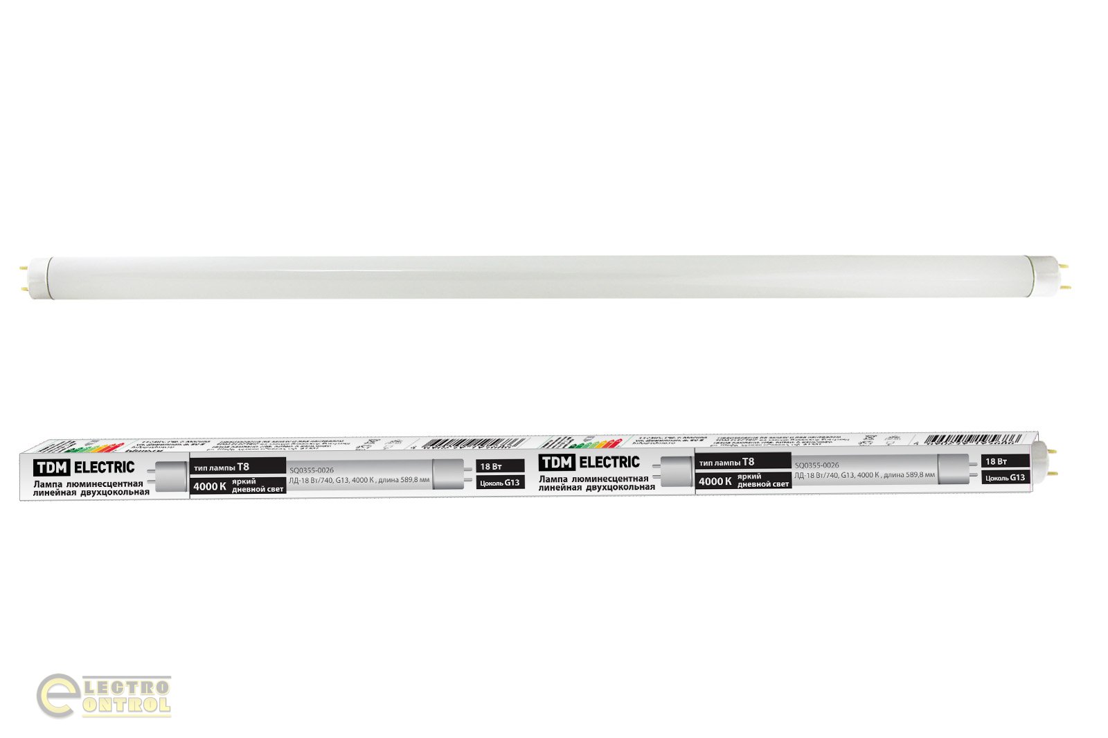 Лампа люминесцентная линейная двухцокольная ЛЛ-18Вт/640, T8/G13, 4000 К TDM
