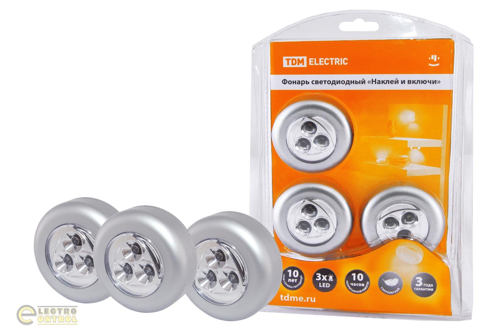 Фонарь светодиодный,;Наклей и включи;, 3 светодиода 9 лм/Вт, бат. 3*AAА TDM