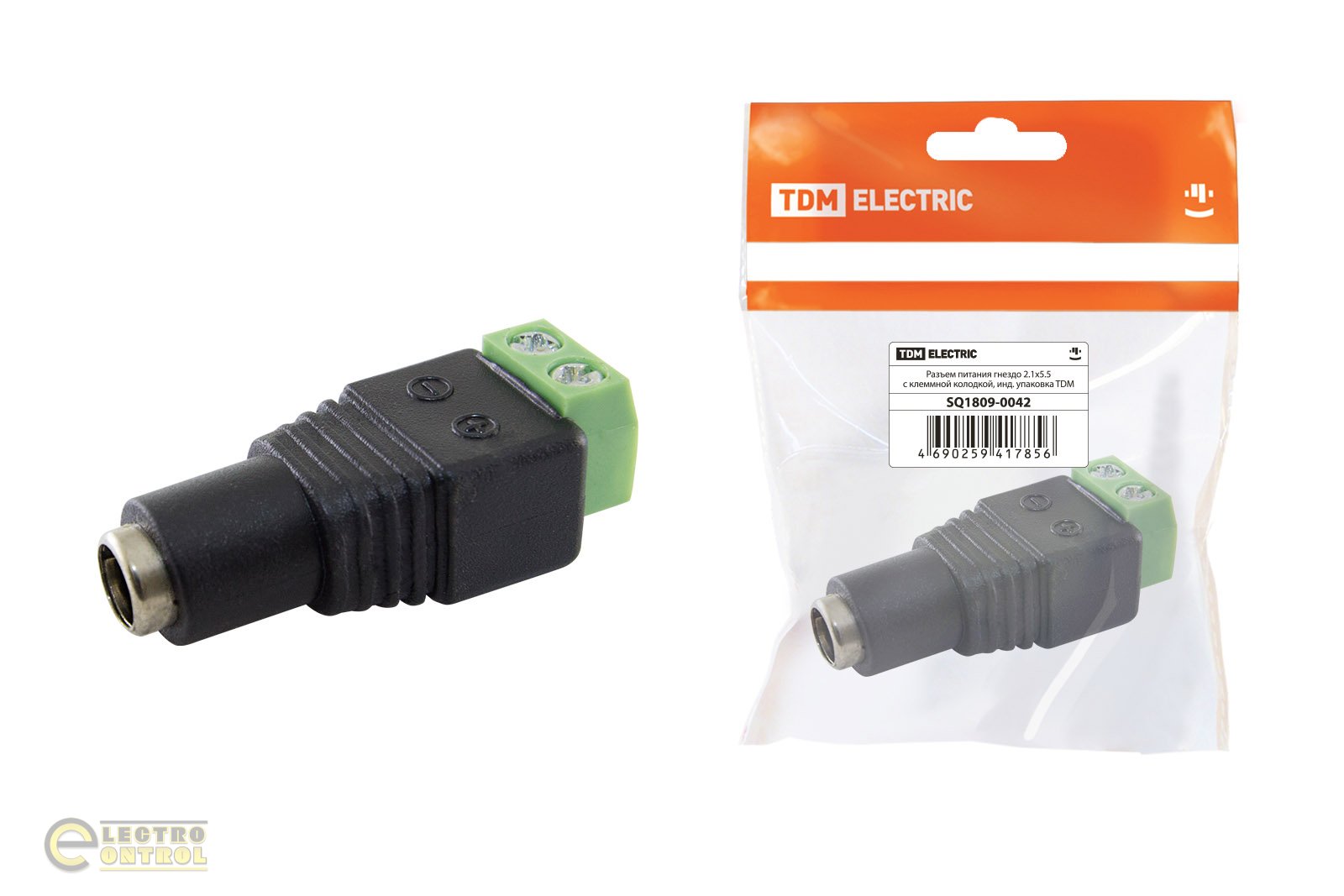 Разъём питания гнездо 2.1х5.5 с клеммной колодкой, инд. упаковка TDM