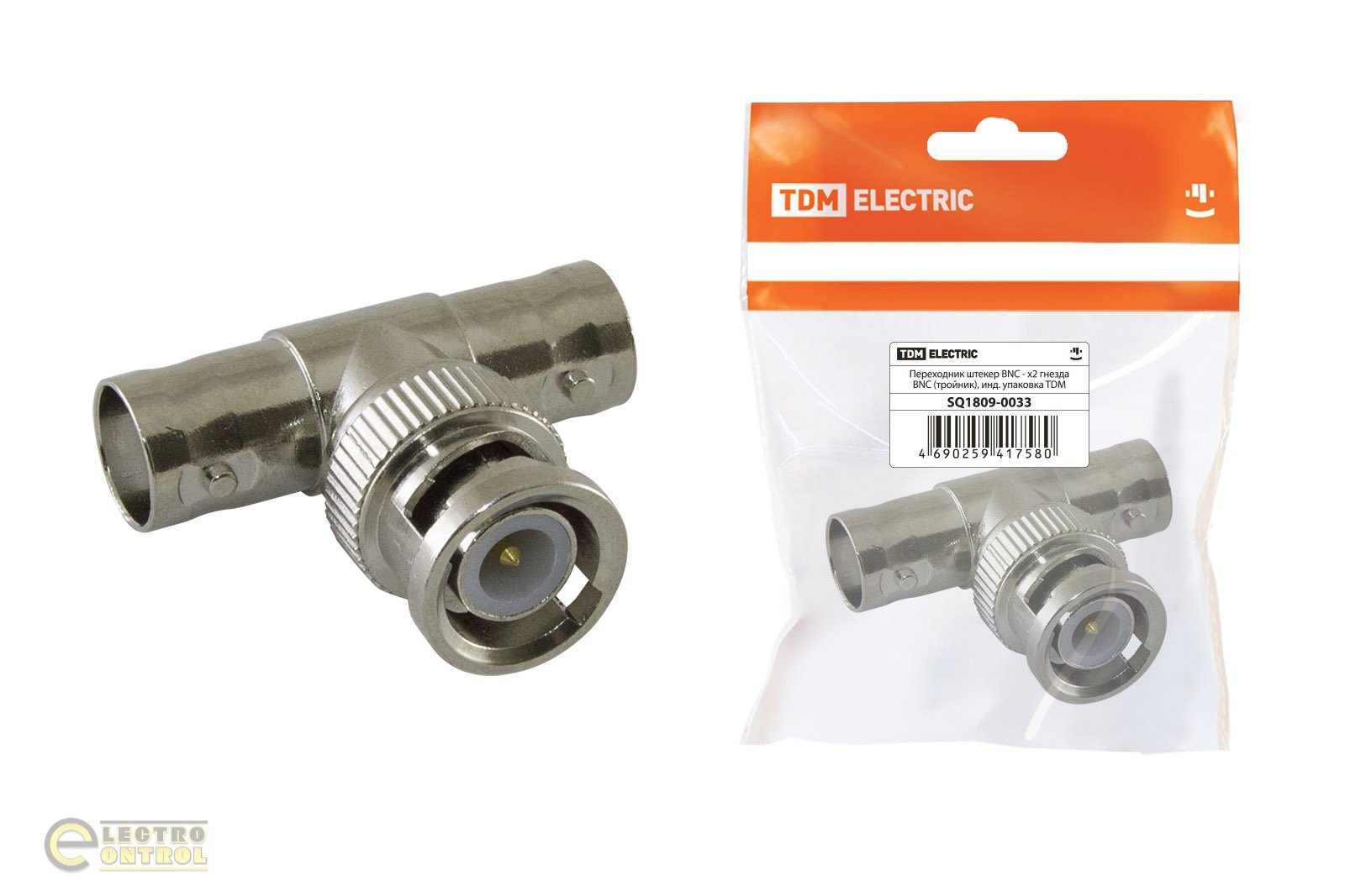 Переходник штекер BNC - х2 гнезда BNC (тройник), инд. упаковка TDM