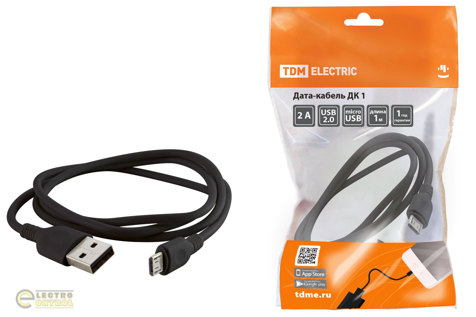 Дата-кабель, ДК 1, USB - micro USB, 1 м, черный, TDM