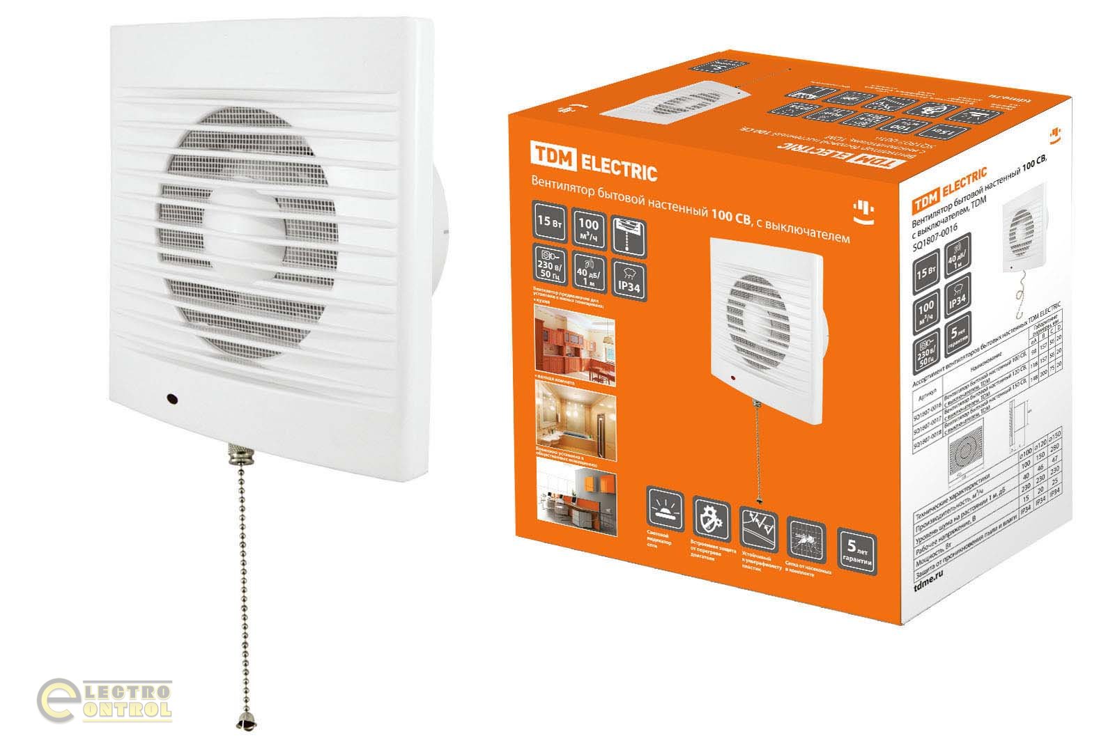 Вентилятор бытовой настенный 100 СВ, с выключателем, TDM