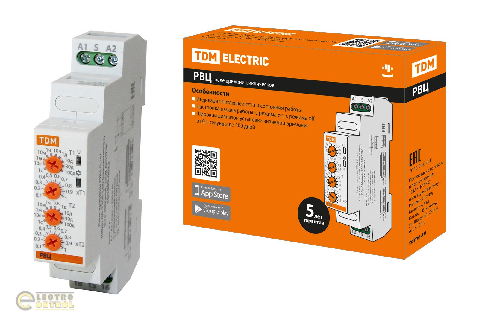 Реле времени РВЦ-0,1с/100дн-8А-230В-DIN (циклическое, 0,1с-100дней, 230В AC) TDM