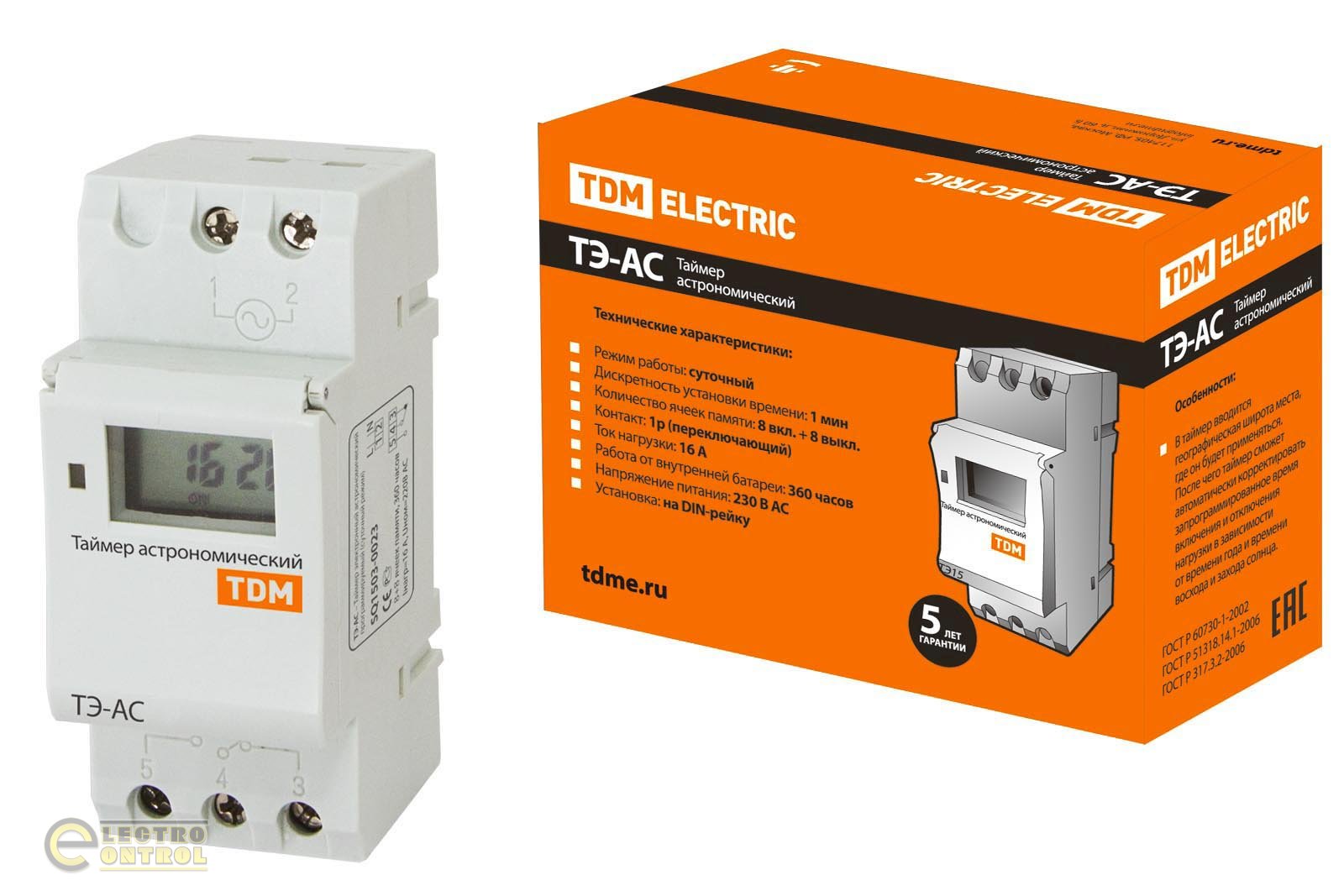 Таймер электронный ТЭ-АС-1мин/24ч-8on/off-16А-DIN (астрономический) TDM