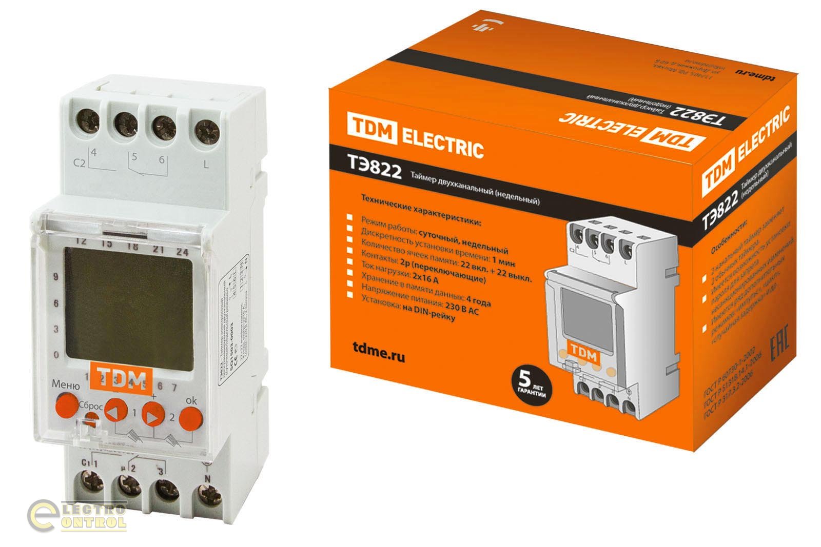 Таймер электронный ТЭ822-2кан-1мин/7дн-44on/off-16А-DIN TDM