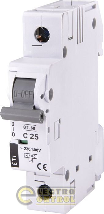 ST 68 1p C 25А 2181318 AC автоматический выключатель ETI, который предназначен для защиты электрических цепей от перегрузок и коротких замыканий.