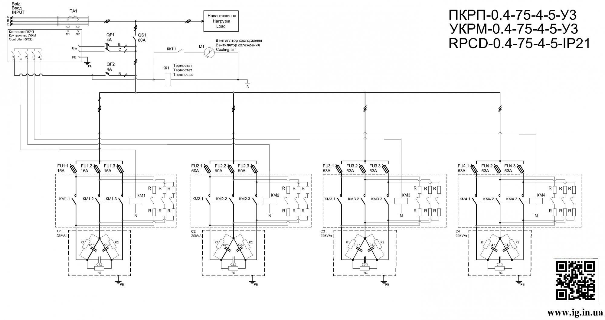 В нашем случае это установка компенсации реактивной мощности 75 кВар УКРМ - 0.4 - 75 - 4 - 5 УЗ