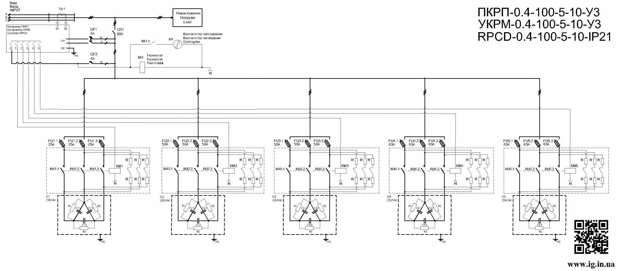 В нашем случае это установка компенсации реактивной мощности 100 кВар УКРМ - 0.4 - 100 - 5 - 10 УЗ
