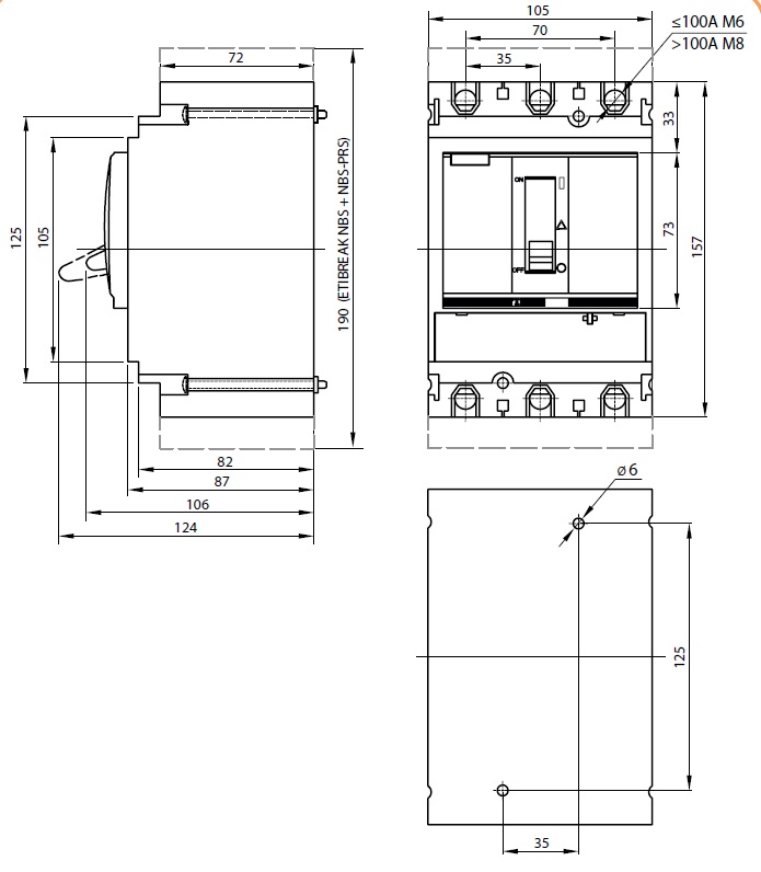 Схема автоматического выключателя NBS-EC 100/3L LCD+RS485 100A 3 полюса 36kA