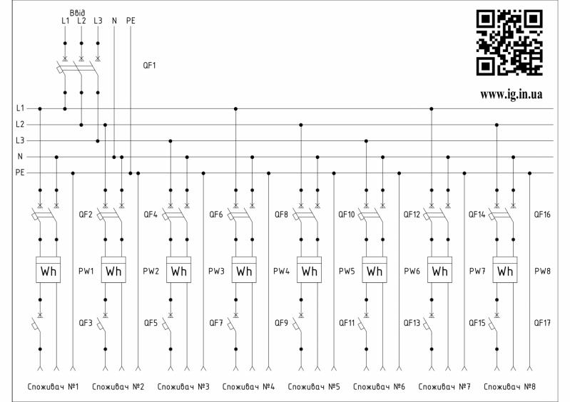 Схема щита технического учета ЩУт-1ф-8: