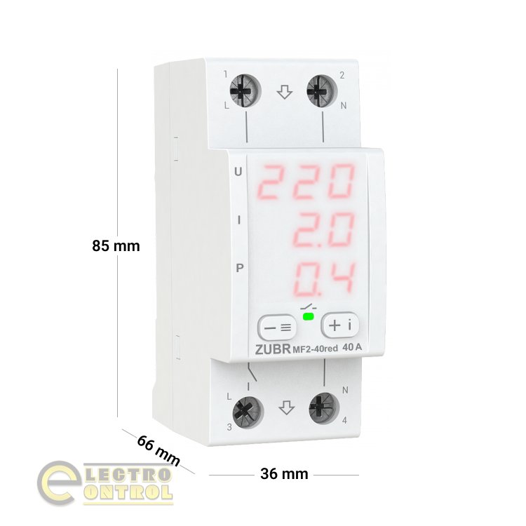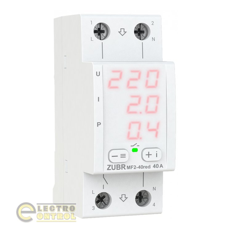Мультифункциональное реле ZUBR MF2 red имеет компактный корпус шириной 2 модуля. Благодаря трем цифровым экранам одновременно отображает значение напряжения, тока и мощности, что очень удобно при контроле всех параметров одновременно. В режиме ожидания можно настроить яркость экрана. У реле ZUBR MF2 red широкий функционал, объединивший в себе: функции ZUBR CV2, контроль по току и мощности ZUBR MF, а также возможность углубленных настроек границ тока.