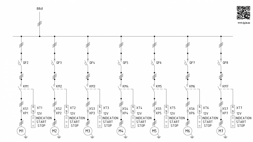 Ящик управления электродвигателями Я5000-7 предназначен для управления семью трехфазными асинхронными нереверсивными электродвигателями с короткозамкнутым ротором. Так же в зависимости от комплектации данного устройства (Я5000) можно защищать двигатель от токов короткого замыкания и тепловых перегрузок (с помощью автомата защиты электродвигателя) и уменьшать значения пусковых токов на катушках двигателя, вести контроль параметров работы двигателя с помощью различных измерительных приборов, что обеспечит защиту от аварийных ситуаций. В данном случаи изделие просчитано на автомате защите электродвигателя и исполнительного механизма в виде электромагнитного контактора.