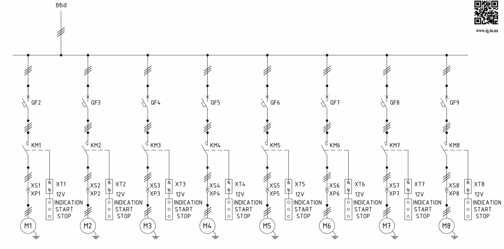 Ящик управления электродвигателями Я5000-8 предназначен для управления восемью трехфазными асинхронными нереверсивными электродвигателями с короткозамкнутым ротором. Так же в зависимости от комплектации данного устройства (Я5000) можно защищать двигатель от токов короткого замыкания и тепловых перегрузок (с помощью автомата защиты электродвигателя) и уменьшать значения пусковых токов на катушках двигателя, вести контроль параметров работы двигателя с помощью различных измерительных приборов, что обеспечит защиту от аварийных ситуаций. В данном случаи изделие просчитано на автомате защите электродвигателя и исполнительного механизма в виде электромагнитного контактора.