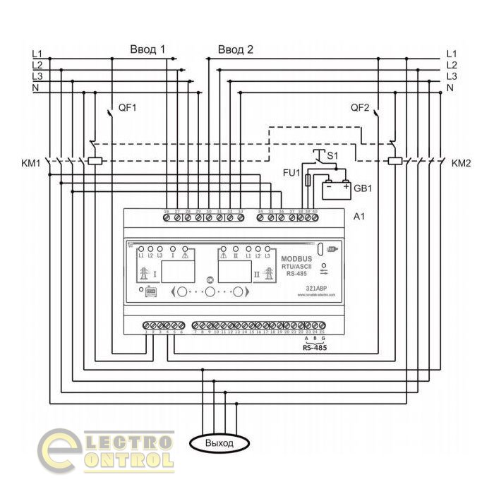 321АВР управляет автоматическим переходом с основного трехфазного источника питания на резервный и обратно при недопустимых отклонениях напряжения в фазах, асимметрии или перекосе фаз, изменение порядка чередования фаз, обрывах одной или нескольких фаз в «основной» или «резервной» сетях.
