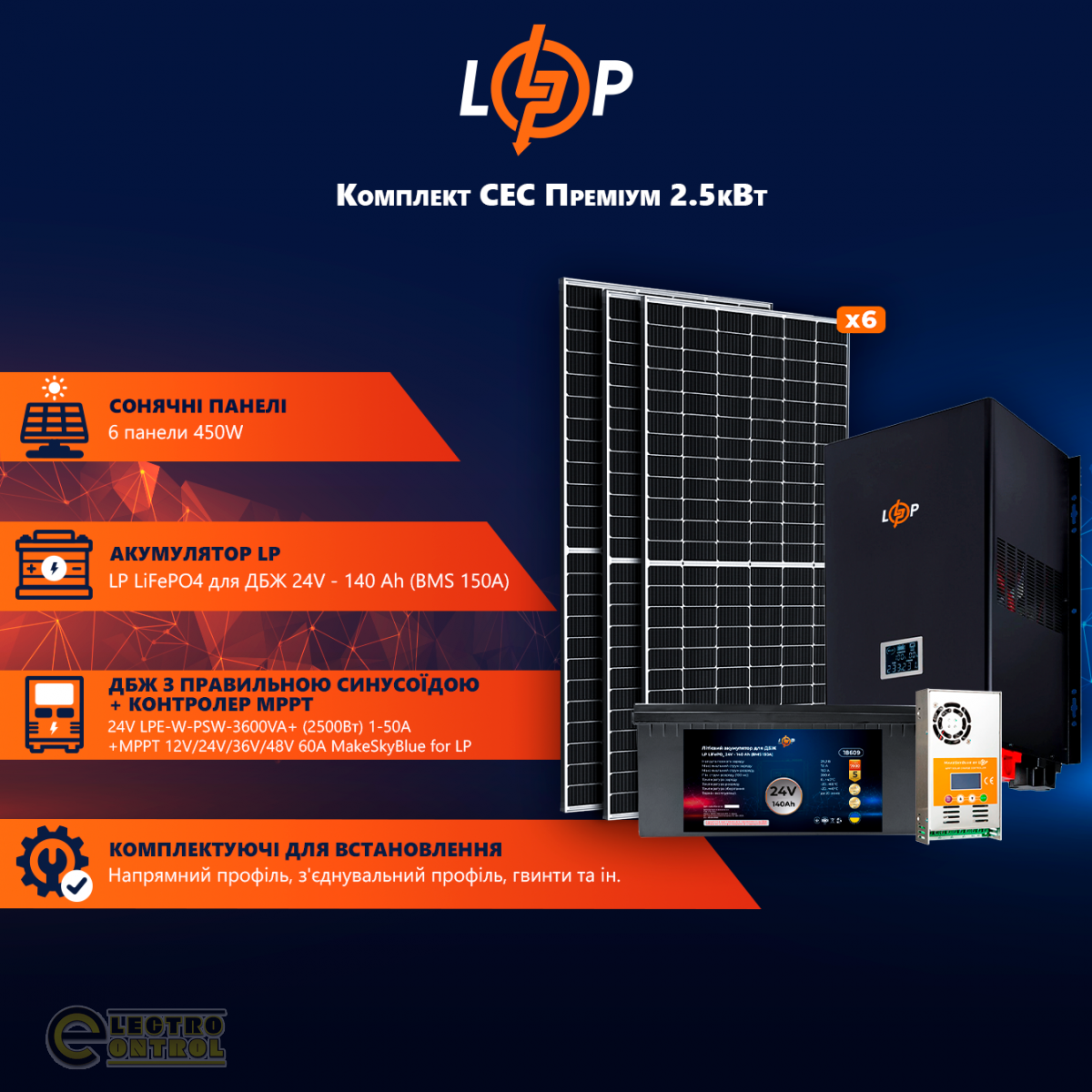 Солнечные электростанции на 2,5 квт LogicPower АКБ 3.3kWh литий 140 Ah