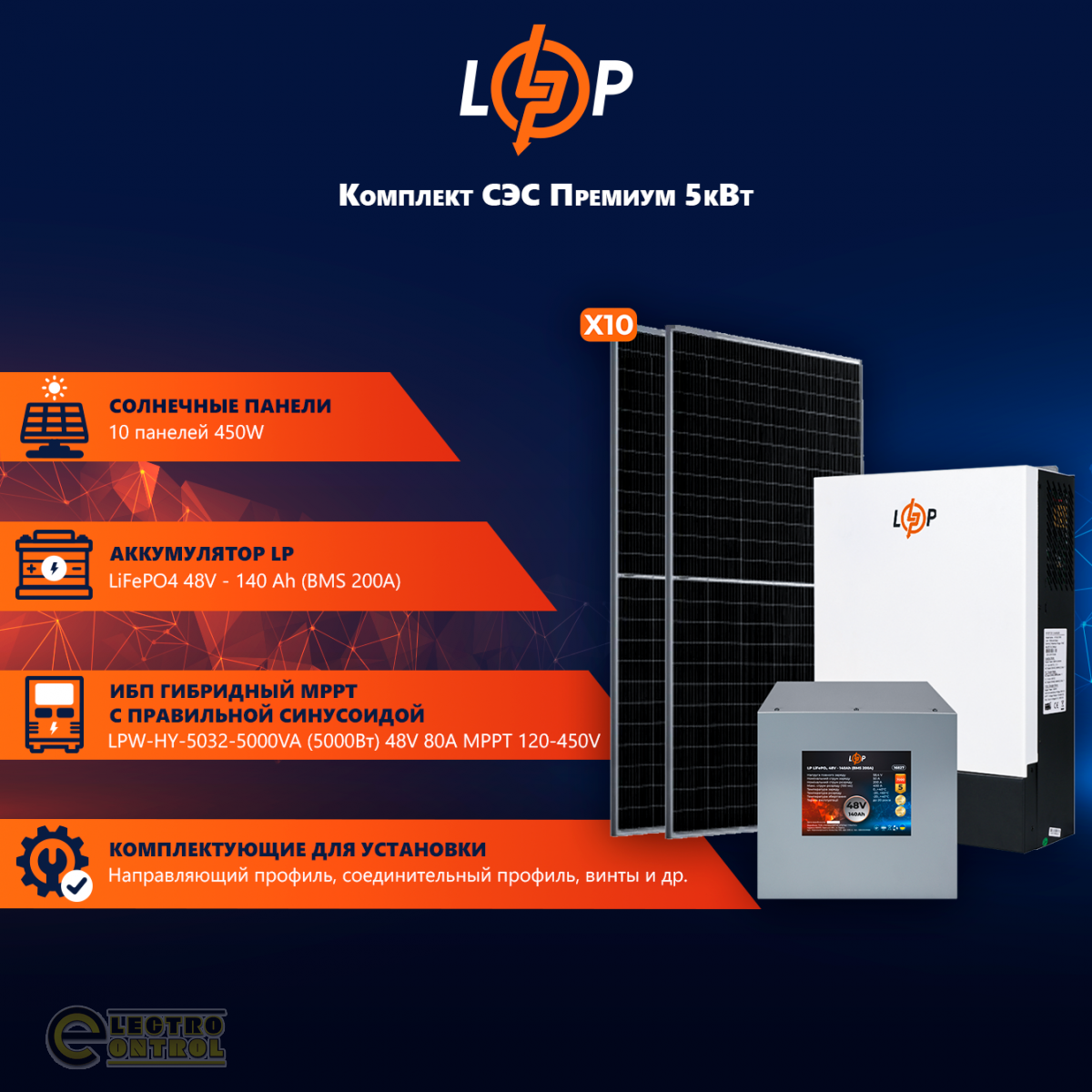 Комплект СЭС Премиум 5кВт 6.7кВт/ч АКБ LiFePO4 140 Ah