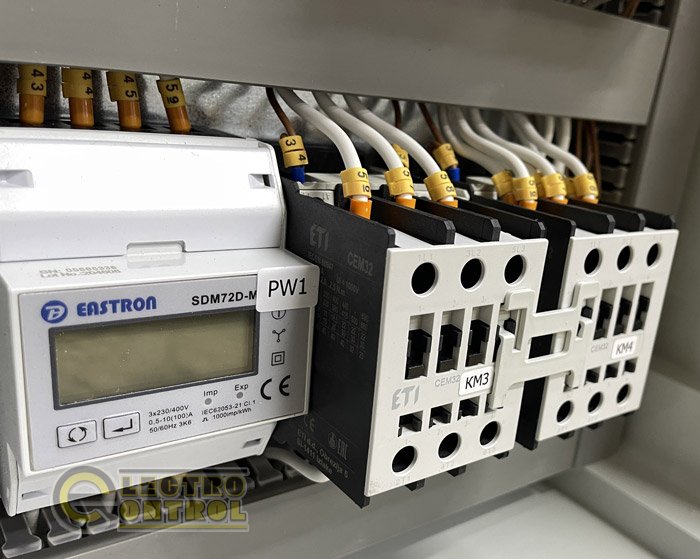 • Счетчик электроэнергии модульного исполнения. Для просчета цены указанной на сайте использовался трехфазный счетчик производителя Eastron (Китай) с номиналом тока 100А (c протоколом передачи данных Modbus (RS-485)). Есть возможность укомплектовать счетчиками следующих производителей: SEZ (Чехия), Hager (Франция), Eaton (США), Shneider electric (Франция), F&F (Польша), ETI (Словения), Eastron (Китай), Hiking (Китай), Tomzn (Китай), Phoenix Contact (Германия), Tense (Турция), E.NEXT (Украина), ORNO (Польша), Zamel (Польша), Smart-MAIC (Украина). Так же возможна установка установка счетчиков под коммерческий учет: NiK (Украина), MTX Teleс (Украина), Gama (Украина).