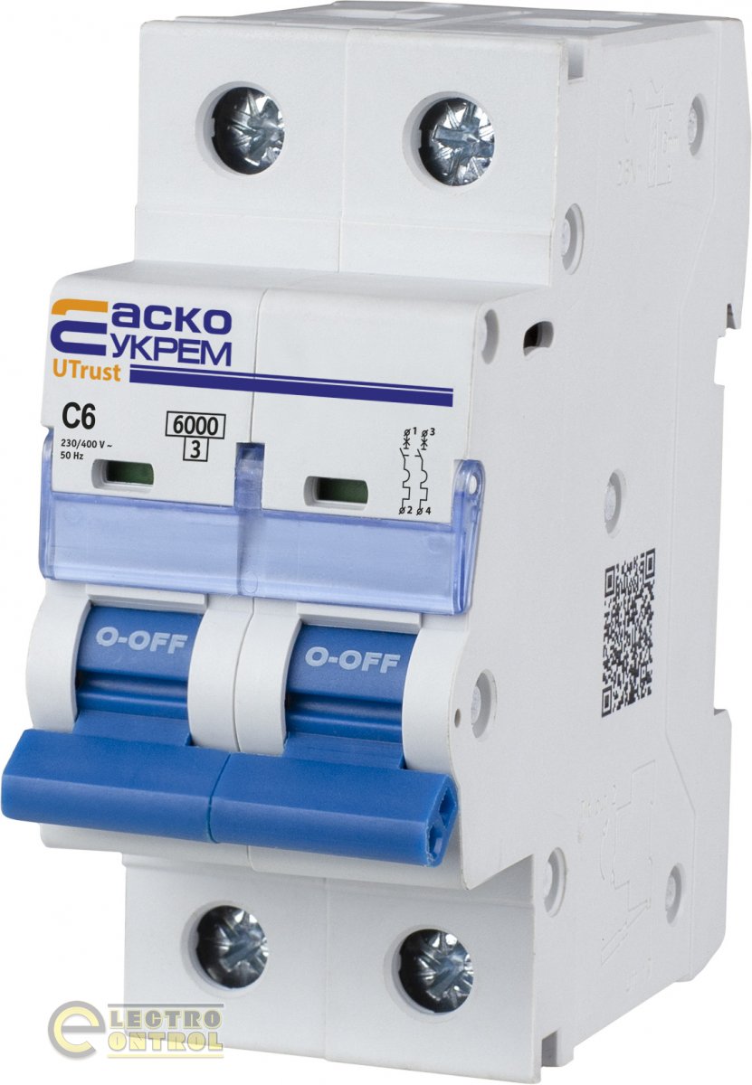 Описание Модульный автоматический выключатель Аско-Укрем A0010210062 UTrust 2р 5А С 6kА