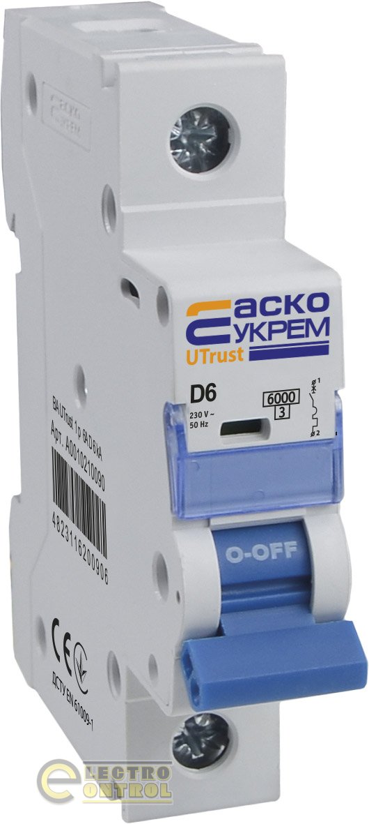 Модульный автоматический выключатель Аско-Укрем A0010210089 UTrust 1р 5А D 6kА