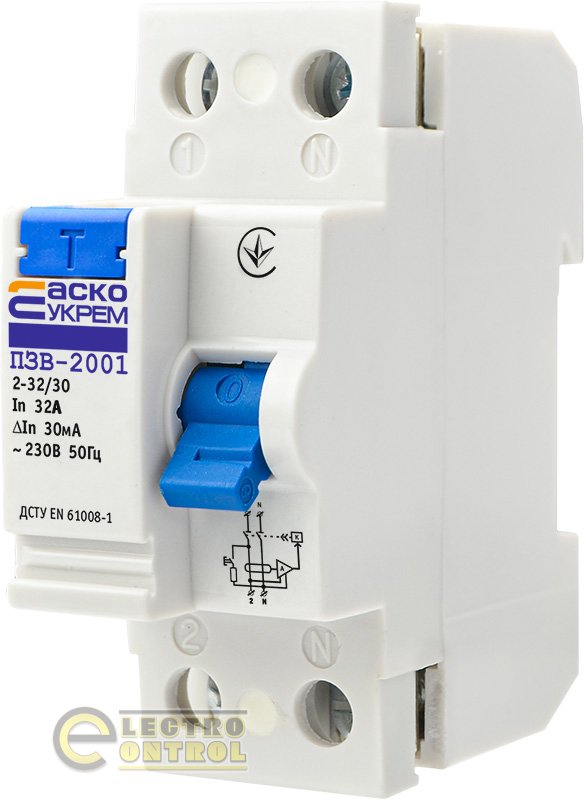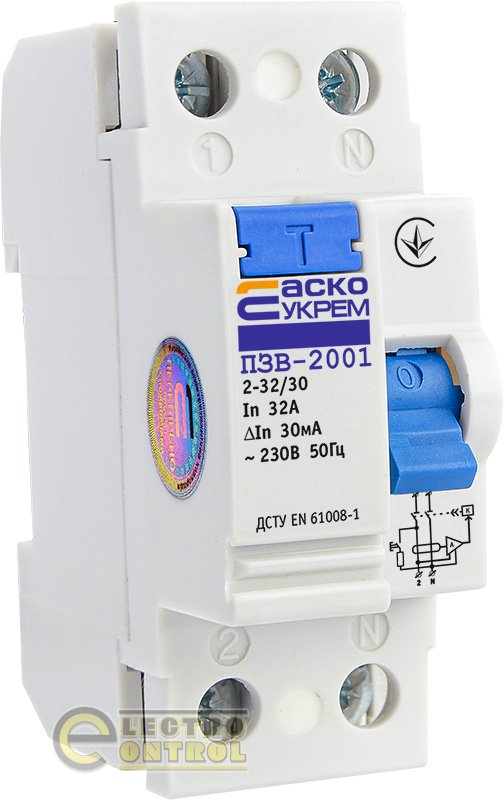 Пристрій захисного відключення УКРЕМ ПЗВ-2001 2р/32А/30мА АСКО