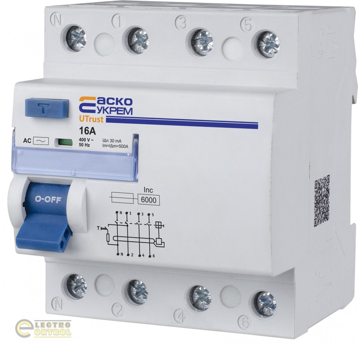 Пристрій захисного відключення UTrust 3P+N 16А 30mА АС