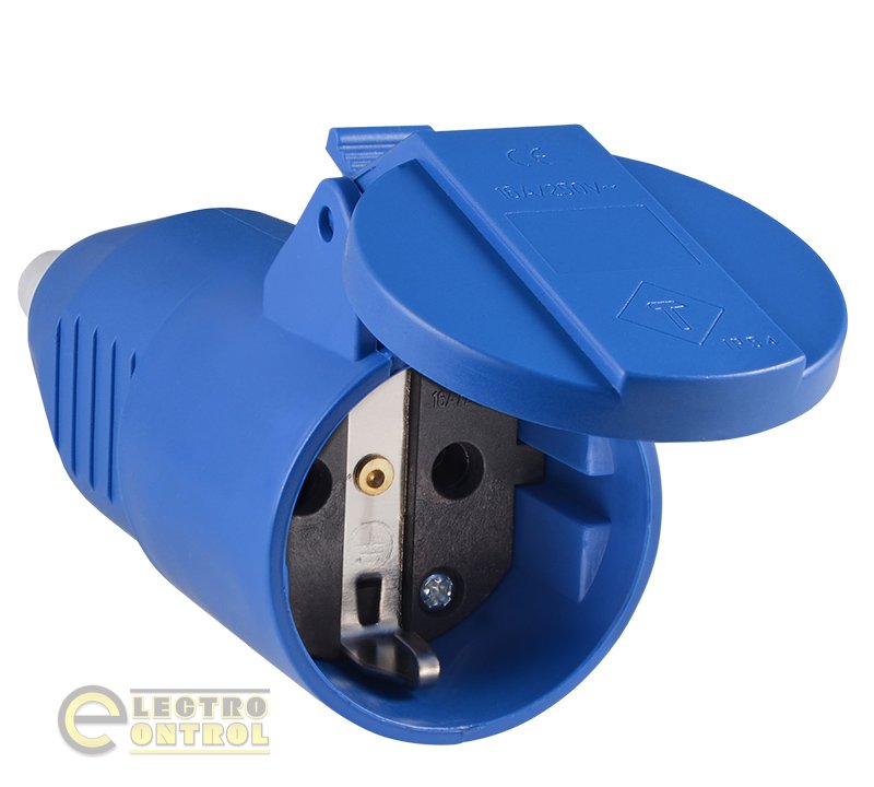 - Розетка Аско-Укрем A0080030010 (гнездо) переносная ГП 16А/2 (220В) 2Р+РЕ (212) синяя-