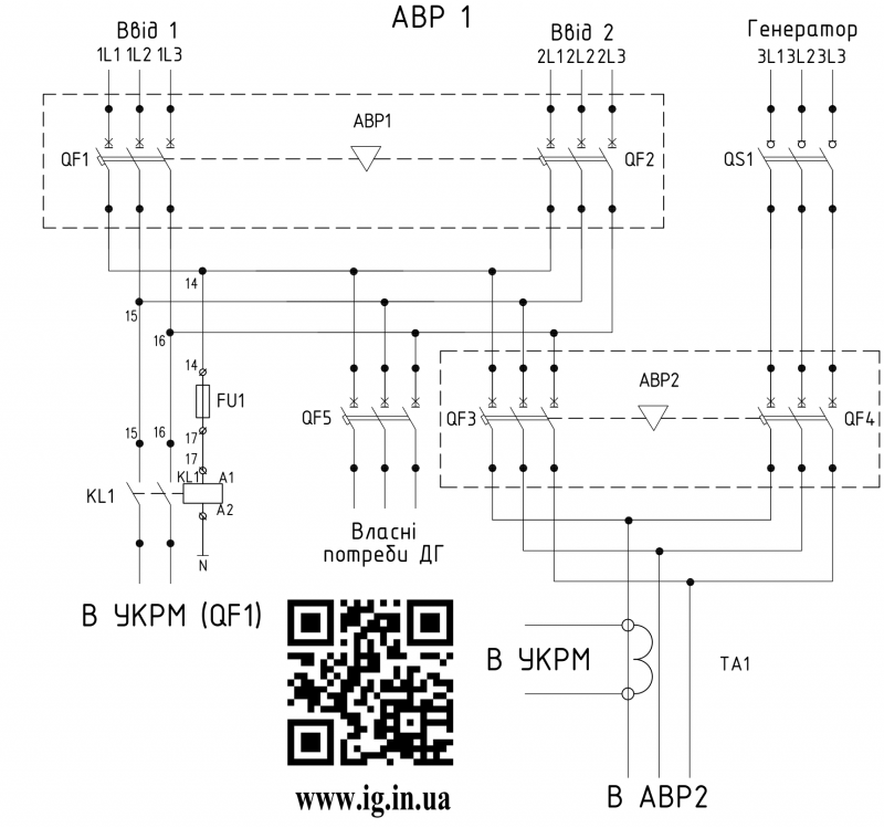 Схема управления автоматическим вводом резерва АВР-400-3в-630А: