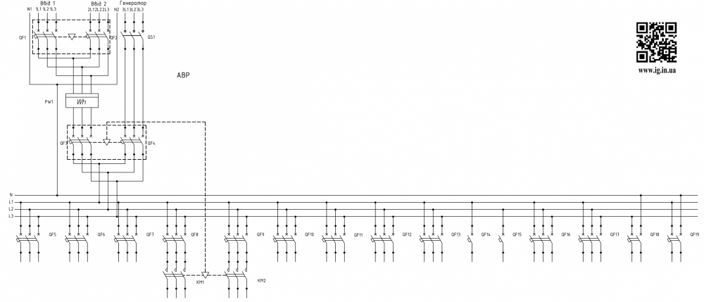Схема управления автоматическим вводом резерва АВР-400-80А: