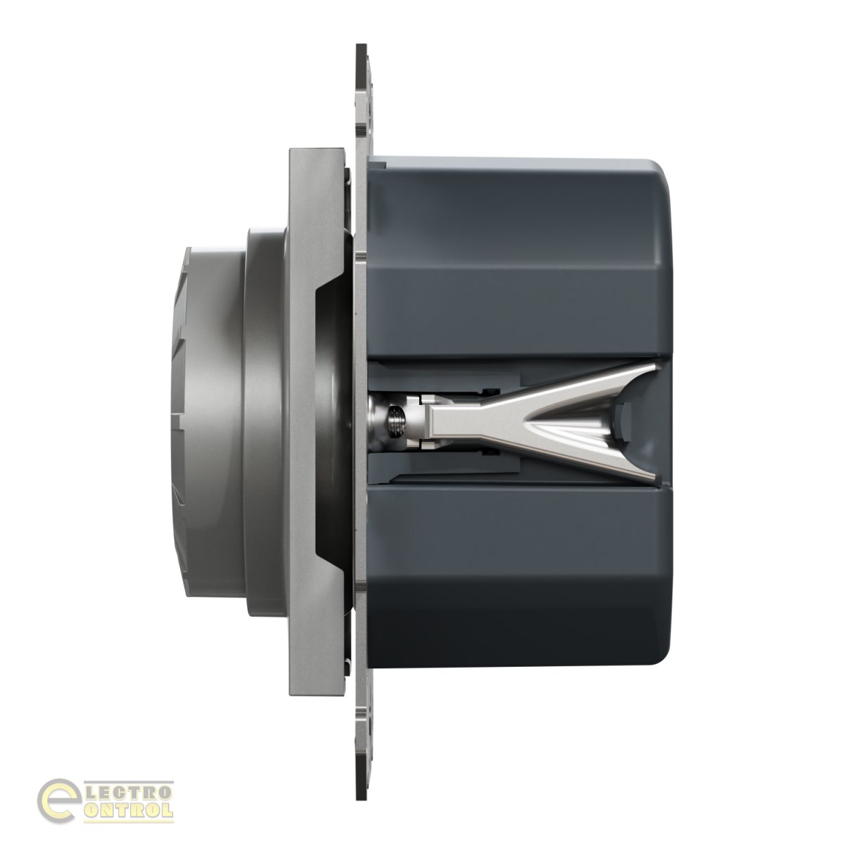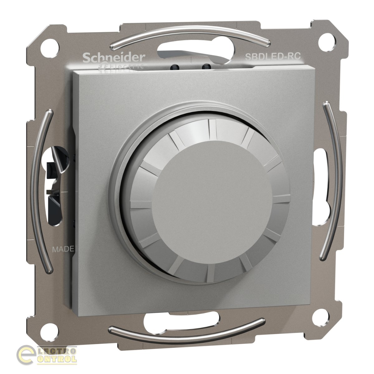 Этот многожильный светодиодный поворотный диммер Asfora представляет собой механизм с центральной пластиной цвета алюминий.