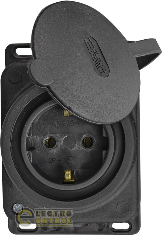 Розетка каучукова з захисною кришкою зовнішньої установки 2Р+PE 16А IP44