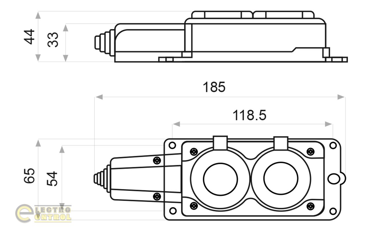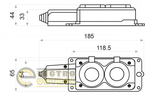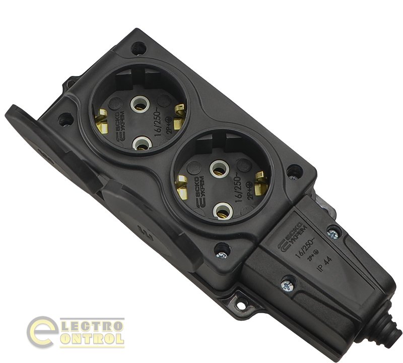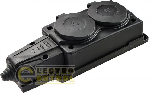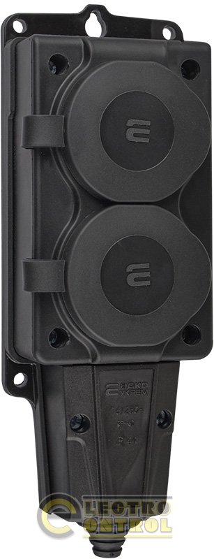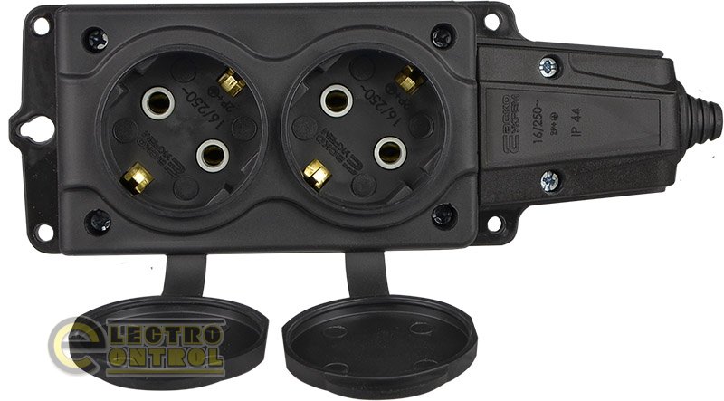 Колодка каучукова 2Р+PE з захисними кришками двомісна 16А IP44