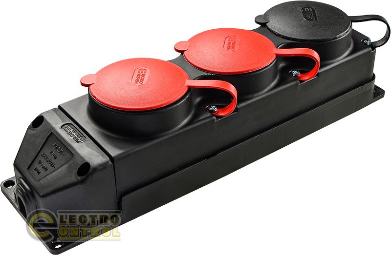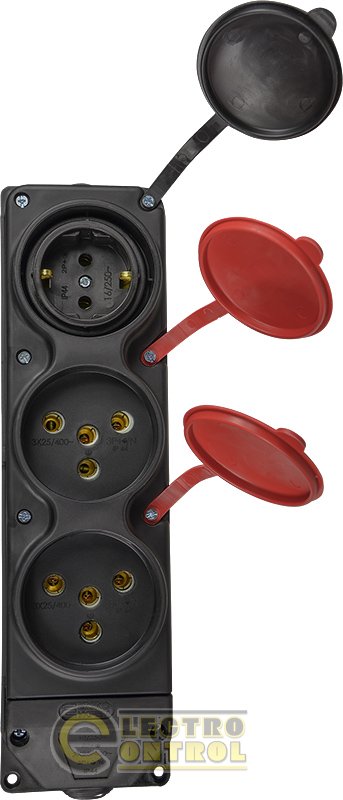 Колодка каучукова 3Р+РЕ з захисними кришками тримісна (2×25А/1×16A*2P+PE) IP44