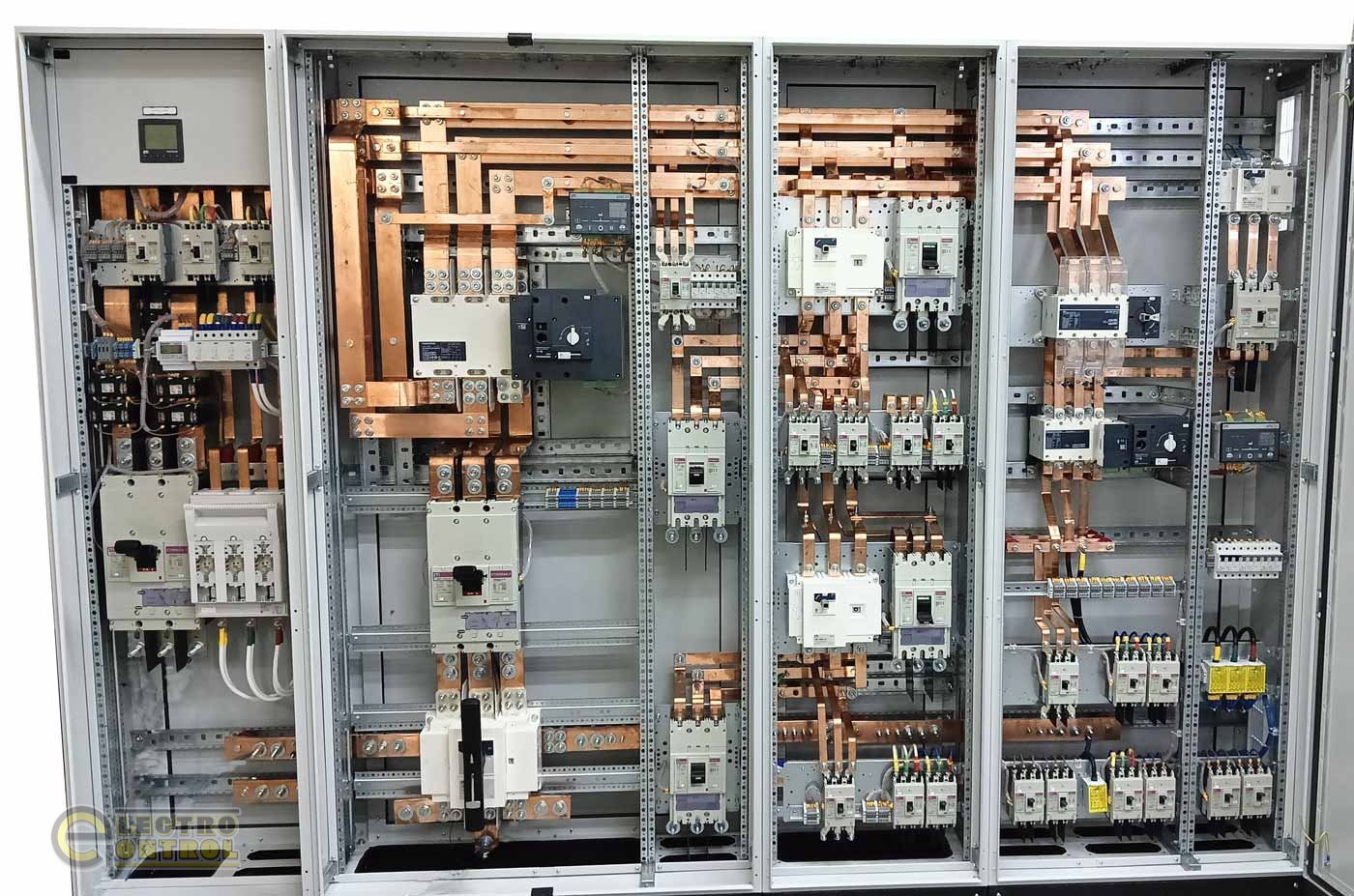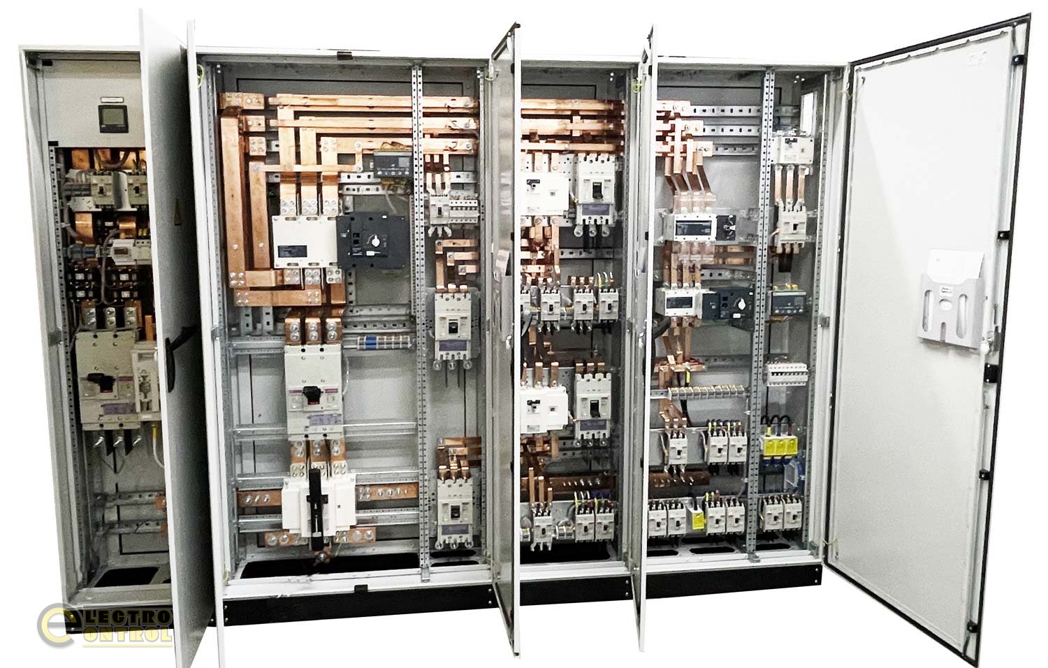 Корпус ГРЩ представляет сварные металлоконструкции между собой (их количество будет зависит от количества вводов и функций в щите), внутри которых находятся монтажные панели с электрической аппаратурой. В ГРЩ можно разместить такие виды функциональных панелей: