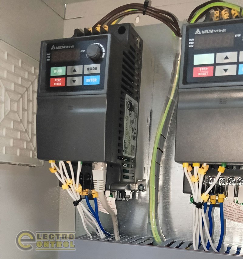 • Функция чередования насосов от выработки, включения дополнительного насоса при увелечении расхода в магистрале в потребителей с помощью использования частотных преобразователей