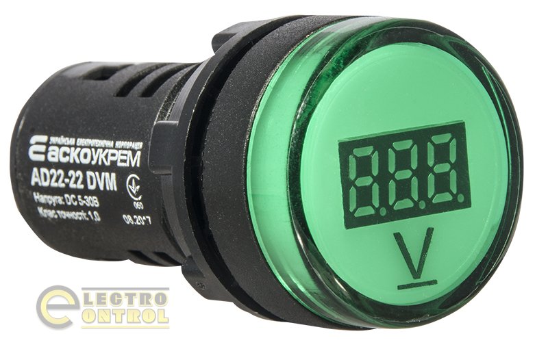 - Цифровой измеритель напряжения Аско-Укрем A0190010014 AD22-22DVM DC 5-30В зелёный-