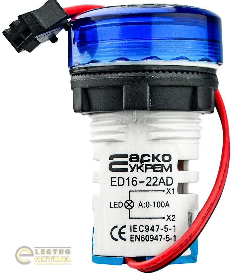 Круглый цифровой измеритель тока Аско-Укрем A0190010027 ED16-22AD 0-100A синий
