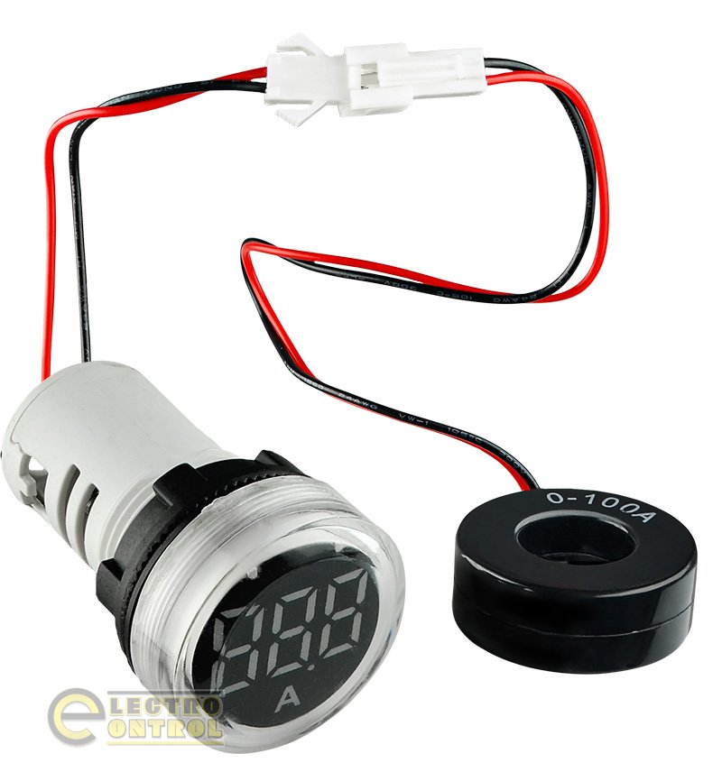 Круглый цифровой измеритель тока Аско-Укрем A0190010030 ED16-22AD 0-100A белый