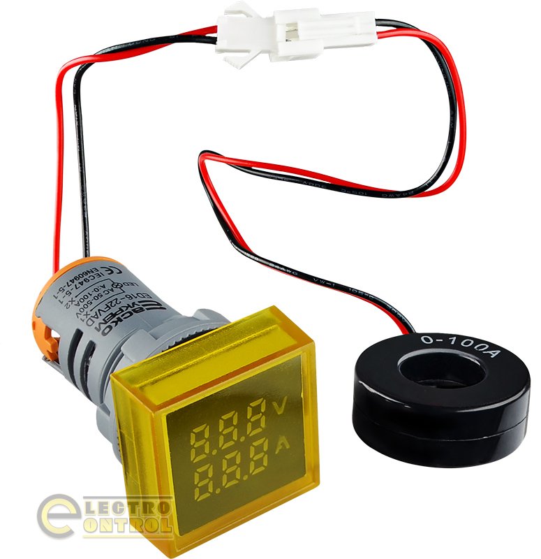 Квадратный цифровой измеритель универсальный тока+напряжения Аско-Укрем A0190010048 ED16-22 FVAD 0-100A 50-500В жёлтый