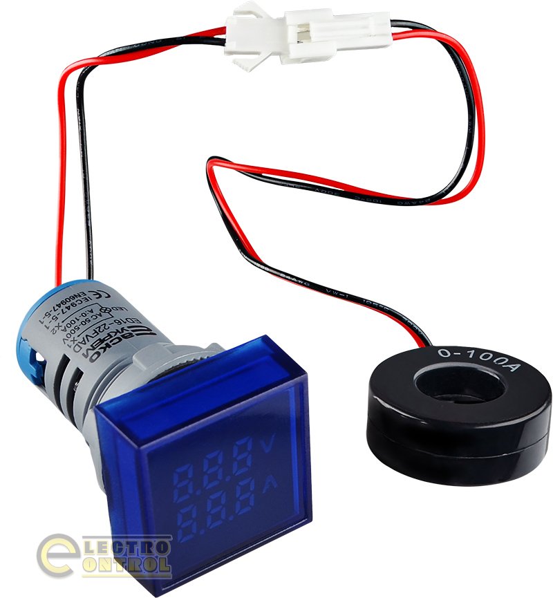 Квадратный цифровой измеритель универсальный тока+напряжения Аско-Укрем A0190010132 ED16-22 FVAD 0-100A 50-500В синий